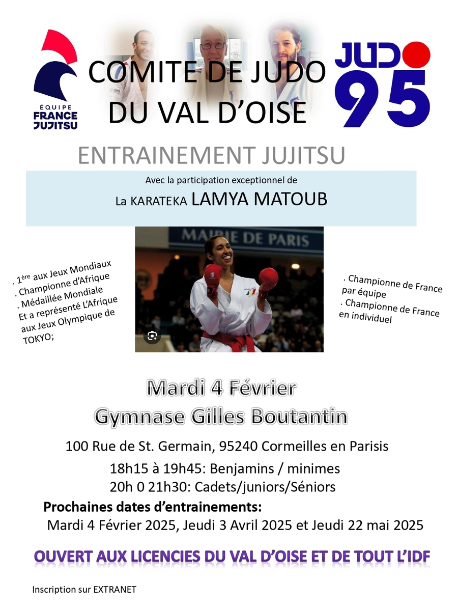 Le mardi 04 févr. 2025 de 18h15 à 21h30 Lieu : Gymnase Gilles BOUTANTIN, 100 rue Saint Germain 95240 Cormeilles en Parisis