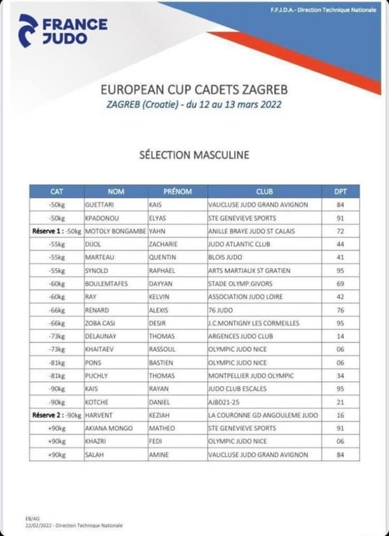 3 valdoisiens ont été seclectionés pour la European Cup Cadets de Zagreb en Croatie le 12 et 13 mars 2022 :